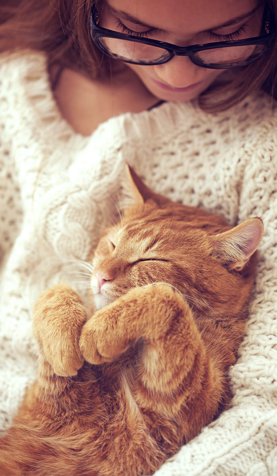 • Ginger cat being groomed