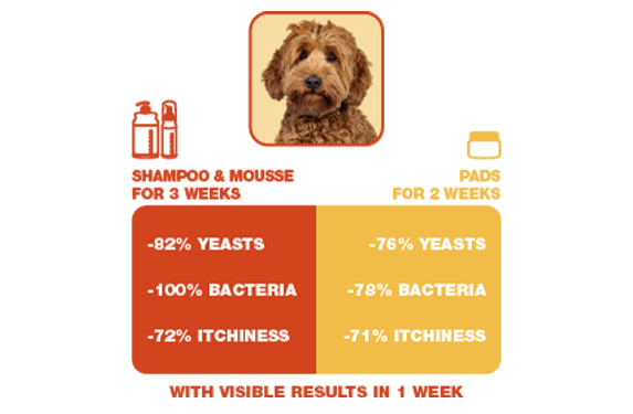Malassezia yeast thrives on imbalanced skin ecosystem; DOUXO® S3 PYO yeasticidal products, with 3% chlorhexidine digluconate, is scientifically proven to restore yeast count to normal level, with visible results seen after one week and maximum results after 3 weeks of use.