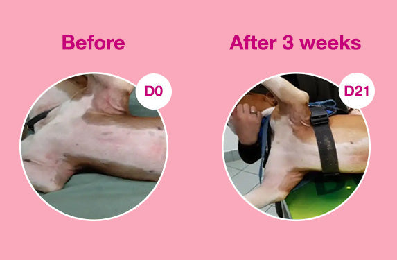 If your pet's skin is red and inflamed, DOUXO® S3 CALM helps soothe irritation in just 7 days, with optimal results seen after 3 weeks.